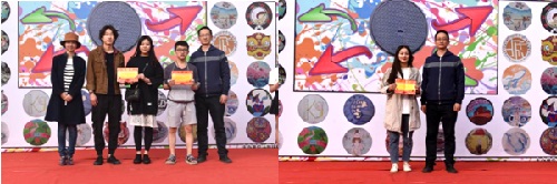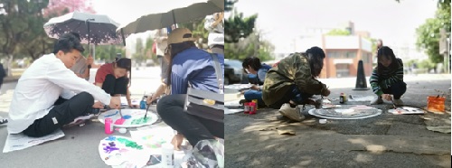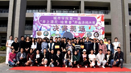 3月28日14:00,比赛开幕式在城市学院实训大楼前举办,主持人介绍了比赛规则、流程,30个参赛团队领取物资后到达指定井盖处进行绘画。整个比赛气氛活跃,同学们分工明确,团结合作,引来了众多师生的驻足观看。由我院学工部郭小辉老师、团委夏新老师、玉雕专业赵旭刚老师等8人组成的评审组就构架、完成度、是否符合主题等要素对作品进行评分,最终评选出一等奖1组、二等奖2组、三等奖3组及最佳团队奖、最具创意奖。