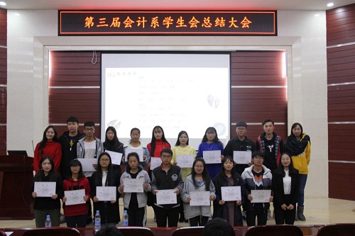2018年12月27日,会计系团委、学生会全体成员在明虹楼报告厅举办了第三届会计系团委、学生会工作总结大会。