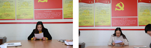 述职会中,第一党支部书记陈娟同志、第二党支部书记刘铭同志从履行第一责任人职责工作情况、存在的突出问题和下一步打算三个方面分别进行了述职。