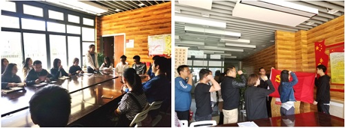 在学习完习近平总书记给中央美术学院老教授重要回信的内容及精神后,何亚丽同志宣布了十月政治生日的党员名单。十月我系共有六名党员过政治生日,这六名党员在支部委员项玲同志的带领下面向党旗重温了入党誓词,同时过政治生日的党员领取了政治生日贺卡。其中马璐瑶同志代表发言:“各位同志,我自2016年10月19日加入中国共产党,一直坚持学习政治理论知识,严格要求自己。在学习上认真努力,在担任支部委员期间踏实工作,作为一名共产党员,我将不忘初心,牢记使命,继续前行。”