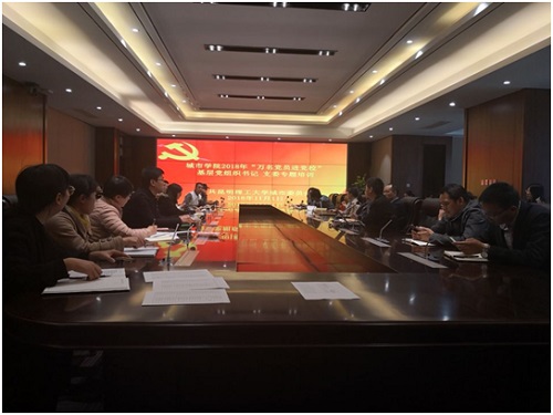为扎实推进党支部规范化建设,努力提升学院各党支部规范化建设水平。2018年11月1日下午13:30,城市学院党委在新实训大楼二楼会议室组织开展城市学院2018年“万名党员进党校”基层党组织书记、支委基础党务知识专题培训。学院正处级组织员李智、基层党支部书记、支委及组织员,共计79名党员参加了本次培训,正处级组织员李智同志主持会议。