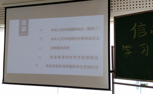 总支书记吴世林老师对今天的学习活动做了总结,要求总支各支部、我系各部门通过多种方式组织各位老师和学生对宗教事务条例等4个文件内容以及对《中国共产党纪律处分条例》其他部分的内容进行深入的学习与教育,强化政治意识、责任意识、阵地意识和底线意识,在今后工作的开展中严格按照相关规章制度的要求来执行。