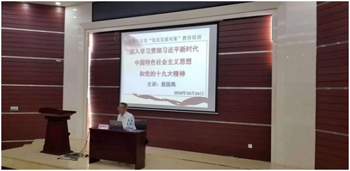 在讲座的最后,殷教授以自身经历,勉励参加培训的党员发展对象:“不忘初心,牢记使命,智慧在汗水中闪光,人格在时空中回荡,青年要让人生过的有意义。”