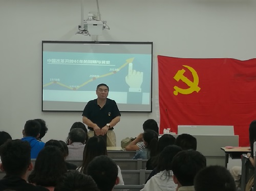随后李洪超老师也讲述了自己大学时光,目睹改革开放下家乡的变化,同时希望在座的广大党员同志好好学习,谱写出自己的优秀故事。