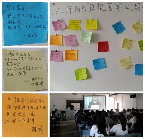 一段交通专业学生自制的精彩小视频拉开了本次活动的序幕,视频中呈现了前期各支部党员写的“军旅情 强军梦 ---三行情书”,以声图文的形式将大家的注意力引入了这次“春风十里改革路 强军建设军旅情”为主题的党员活动日中。