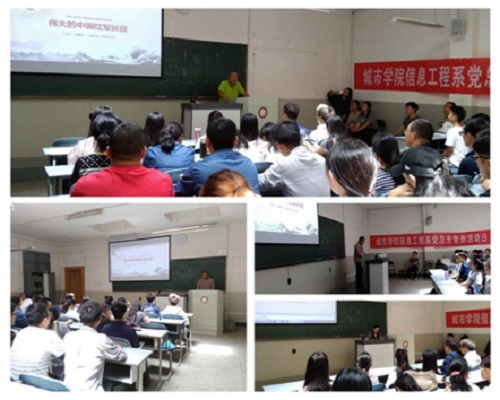 信息工程系党总支为深入学习宣传贯彻党的十九大精神,落实学院下发关于传承红船精神系列读书活动,新学期伊始,我总支结合万名党员进党校的培训活动开展了“不忘初心,牢记使命——缅怀英烈 崇尚英雄 走好新时代的长征路”主题党员活动日。本次党员活动日于2018年8月30日下午在润泽楼201教室开展,由信息工程系党总支副书记王伟平同志主持,吕建国副院长到会指导,信息工程系教工党支部、学生第一、第二、第三党支部和入党积极分子参与。