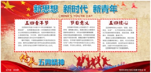 5月4日,开展了“五四”青年节展板宣传并参加学院评比,获第二名。