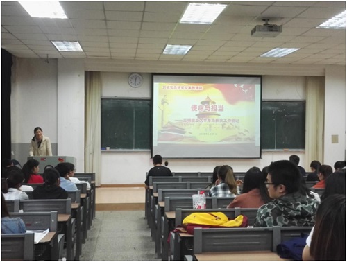 为深入学习习近平新时代中国特色社会主义思想和党的十九大精神,教育我系全体党员不忘初心,牢记使命,6月28日下午,会计系党总支邀请城市学院党委委员李智老师作“使命与担当”主题讲座。我系总支班子成员,教工党员、学生党员、入党积极分子聆听了讲座。讲座由总支书记刘秀丽老师主持。