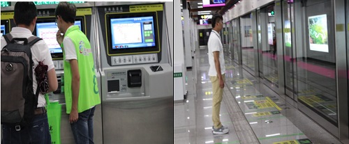 到达地铁站后,地铁站工作人员为我系志愿者进行了岗前培训,随后志愿者们根据安排分别到售票机、闸机口、站台开展志愿活动。售票机的志愿者负责协助维持购票秩序以及对需要换乘的乘客如何换乘进行讲解;闸机口的志愿者负责引导携带大件行李、行动不便的乘客乘坐无障碍电梯到站台;站台的志愿者,在地铁到站时引导乘客按地面指示标志排队候车,提醒乘客在乘车时“先下后上,避免拥挤”,在地铁出站后和站台工作人员一起巡视站台。活动结束后,地铁站工作人员为20名志愿者颁发了志愿服务证书,那是荣誉的象征,也是地铁站工作人员对我系志愿者工作的肯定。