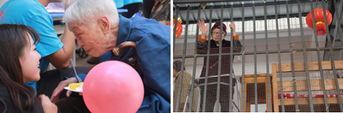 在志愿服务活动过程中,老人们将志愿者视为自己的孩子,与志愿者们拉家常、讲过去、鼓励志愿者们要用心读书,以后报效祖国。当志愿者们即将离开时,部分老人站在楼上扶着栏杆不停地跟志愿者挥手,看着志愿者离去的背影,眼里流露的尽是不舍与挂念。