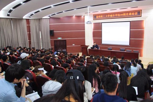 2018年4月19日下午6点40分,我院于明虹楼报告厅举办了昆明理工大学城市学院08期党课培训第四讲。城市学院党委副书记李魁荣老师为现场的入党积极分子作题为《做社会主义核心价值观的践行者》的培训。