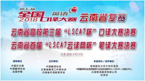 中国翻译协会、云南省翻译工作者协会和云南省外语教育学会于2018年3月至2018年6月举办第七届全国口译大赛&云南省高校第三届“LSCAT杯”口译大赛(英语)。2018年口译大赛分为云南省复赛、大区赛和全国总决赛,云南省复赛于2018年4月22日在昆明医科大学外语部三楼(呈贡)举办。