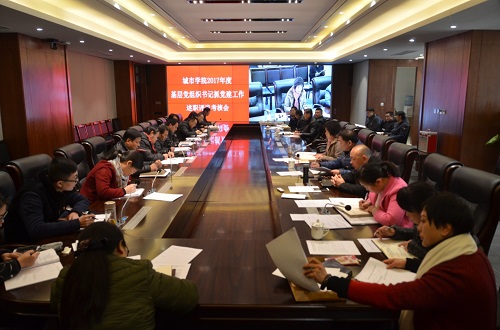 为深入学习贯彻落实党的十九大精神,把基层党建述职评议考核作为强化“四个意识”、落实管党治党政治责任的重要举措,作为严肃党内政治生活、推动全面从严治党延伸的重要抓手,城市学院党委认真研究谋划、精心安排部署,扎实有序推进2017年度基层党组织书记抓党建工作述职评议考核工作,严格按照述职评议考核的方法步骤开展工作。在认真完成各项准备工作的前提下,2017年12月25日上午9:00,学院党委在实训大楼2楼多功能会议室组织开展述职评议考核会,参加会议的人员有:城市学院党委委员、各基层党组织书记、熟悉党务工作的领导干部、群众共40余人。党委副书记李魁荣同志主持会议。