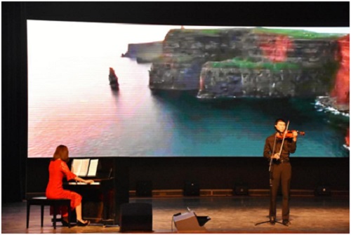 刘书月与张博二人运用钢琴与小提琴合奏《在水一方》展现出了空灵,悠扬,情意深深,令人回味的文化意境。二人配合默契,主次分明,朴实、自然、优美和谐演奏,令现场观众无一不为之沉醉。