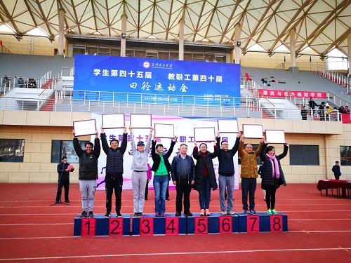 虽然天公不做美,阴雨连绵,但严寒和阴雨阻挡不了我院运动健儿的热情和活力,经过顽强拼搏,城市学院教职工代表队最终取得了团体总分230分的好成绩,获得亚军。本次运动会团体接力项目,我院代表队发挥特别出色,在七个参赛项目中,全面开花,共斩获3个第一名,2个第二名,1个第三名和1个第四名的优异成绩,总得分104分,再创历史新高。我们将好好总结这次比赛的经验,找出差距和不足,从现在开始做好谋划和准备,力争明年重新夺回团体总分第一,这就是我们城院人的精神风貌。