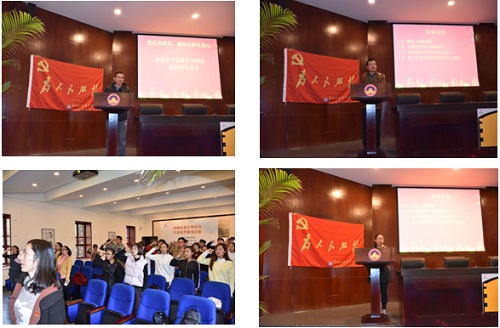 参观结束后,我系党总支在多功能厅开展了三项议题的“重走讲武堂,廉洁自律在我心”主题学习活动,由学生党支部书记魏彬同志主持。首先一起观看了“党员发展流程学习”的视频,鲜明的人物形象、条理清晰的5个阶段25个步骤讲解让大家对党员发展流程有了更全方位的认识。接着组织员侬阳霞同志带领全体党员集体宣誓,在庄严的《国际歌》中党员们重温了入党誓词,铭记作为一名共产党员的历史使命;预备党员代表江玲同志发言,她回顾了自己进入大学以来的进步与成绩,表示定将紧跟党的步伐,不忘初心,继续前行;教工党支部书记古兴伟同志为2017年新发展的党员寄语并表示祝贺,望学生党员在以后学习工作中认真努力,积极响应习总书记的号召争做“四有青年”,望志存高远,德理兼修,充分发挥党员模范带头作用。最后,党总支书记夏永华同志就此次活动总结发言,就“廉洁自律”对教工党员与学生党员分别作了工作要求,并警醒大家不要松懈,严守党的纪律规矩,做到廉洁公开透明,养成遵纪守法的好习惯。