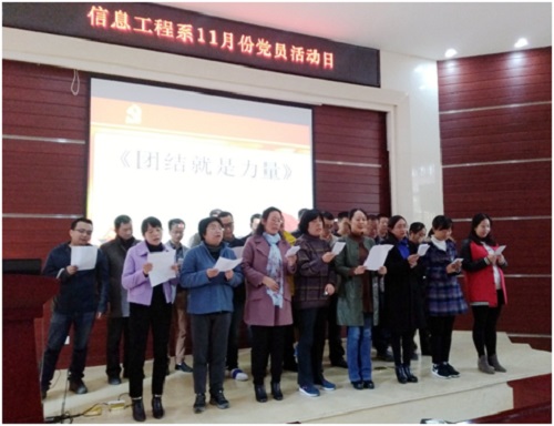2017年11月30日15:30,城市学院信息工程系党总支在明虹楼报告厅组织了11月份的党员活动日,活动以“中国梦想在前行--唱响颂歌表党心”为主题,以党员歌唱比赛的形式展开。