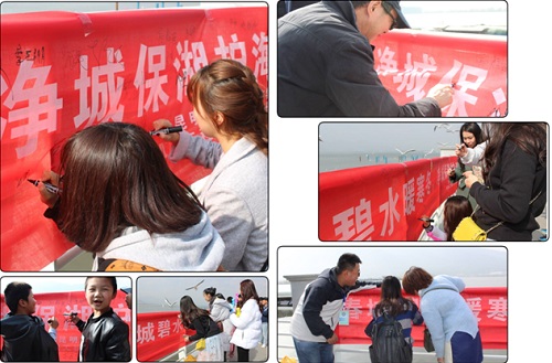 活动中,志愿者们向来往市民分发护鸥宣传手册,宣传文明观鸥和保护红嘴鸥的意义,并邀请市民在护鸥横幅上签名写下自己名字,从市民在横幅上签上名字的那一刻开始,就意味着他们担起了护鸥小卫士的责任。在活动的最后,志愿者们清理海埂大坝周边垃圾,把可见可捡的垃圾丢进垃圾桶,给市民做了良好榜样,向市民传达了保护海鸥从小事做起,保护环境从现在做起的理念。