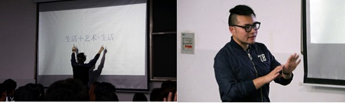 11月20日晚,昆明理工大学城市学院“ART时.空•城市讲台”第11期在梓韵楼305开讲。本期由特邀艺术家刘香林先生主讲,“昆明艺术周”发起人、艺术家和丽斌先生担任学术主持。活动还邀请到了TCG诺地卡文化中心艺术总监罗菲先生、艺术家常雄及和丽斌行为艺术工作坊的学员们,艺术设计系薛滔老师等近两百名师生参加了本次讲座。
