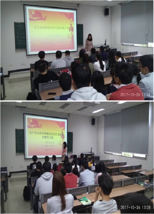 首先,黄老师介绍了本次党课学习的目的、内容以及我系发展党员需要经历的5个阶段25个步骤。然后,黄老师强调了学生党员加强党的基本理论学习的重要性,作为学生党员如何发挥先锋模范作用,并对机械工程系学生党员提出了一些要求:要求学生党员思想是积极进步的、成绩是名列前茅的、工作是兢兢业业的、生活是乐观向上的。黄老师从小事说起,从实际出发,把十九大精神传达给在座的每一位学生党员。