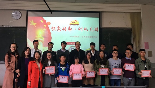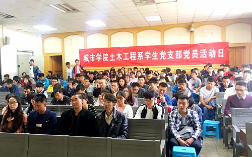 2017年10月26日14:00,土木工程系党总支在润泽楼101举办了“红色传承·时代先锋”树典型、学先进主题宣讲会,城市学院院长樊刚、土木工程系党总支书记陈勇以及全体教工党员参加了本次党员活动日,此外,土木工程系学生党支部全体党员、预备党员、入党积极分子等百余人也积极参与本次活动,热情聆听宣讲。