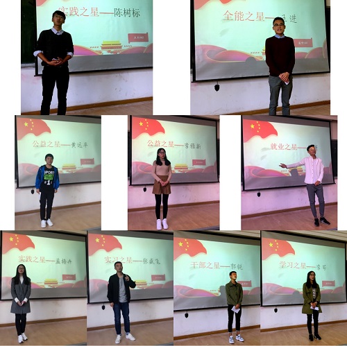 “学习之星”吴斌、李芬、肖黎,作为被奖学金环绕的优秀代表,作为大一一次通过四六级考试的典型,有效的学习方法方能大大提高学习效率,最重要的还是培养自身的兴趣,有坚持不懈的毅力;“学生干部之星”郭锐游走在5个职务之间,既能合理分配时间,创造学院篮球队的优异成绩,又能不忘保持学习上的名列前茅,强烈的责任感和上进心引起学生干部的共鸣;“全能之星”王进作为城市学院到马来西亚博特拉大学交流的学生代表,匆匆四年收获了学业、爱情、社团、友谊……不忘初心,方得始终;“实习之星”张盛飞和“实践之星”陈树标、孟格卉用亲身经历告诉了我们实践的意义;“就业之星”俞潇通过分享自己求职过程的趣事让同学们明确了学习的目的和求职的目标,为求职早做充分的准备;“公益之星”李雅新、黄远平回忆的志愿服务经历,向所有人传达了爱,传达了服务的精神!现场的所有人都受到了深深的震感和感染,就连土木1711的主持人张云森都不禁与大家分享感悟。