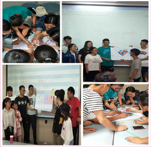 本次见面会创新工作形式,引入团队建设,以班级为单位,每组10人,共7组,设置“班委职能介绍”、“团队建设”和“寻找幸福感”三个环节。