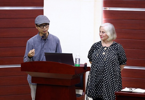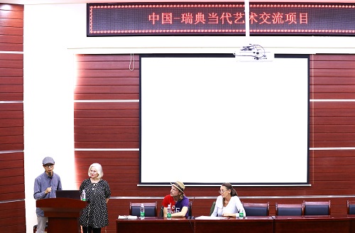 讲座开始,该项目瑞典发起人玛德琳•阿雷曼女士与中国发起人罗菲先生为大家做介绍。项目的初衷是中国和瑞典的艺术家们渴望通过探索和讨论不同条件下的艺术家的差异性和相似性。通过此次交流项目,作为艺术家能获得对他人以及各自社群更广阔的认识。
