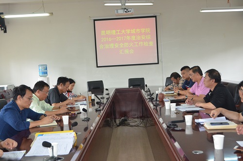 9月6日下午,昆明理工大学第六检查组组长周立超一行到城市学院检查、考评治安综合治理、安全防火工作。樊刚院长、肖灵琥副院长、李魁荣副书记、院长助理王钢及相关部门负责人出席会议。