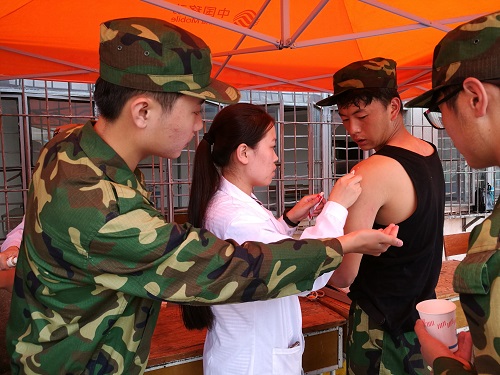 医务室在训练场设置了医疗点,安排医护人员全程值守并执行24小时值班制度,为学生提供全天医疗服务。针对气候变化、训练强度大等可能引发学生身体不适的情况,医务室在训练场预备了氧气、血压计等医疗器械及免费药品,确保为学生提供及时、高效的医疗服务。8月23日下午,新生军训开训动员大会刚结束,一场瓢泼大雨夹带冰雹袭来,学院启动军训突发应急处置预案,校医务室提供了及时、到位的服务保障。