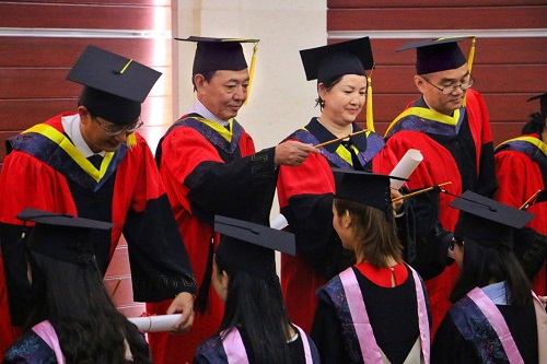 6月19日上午9点。国土资源学院培养基地、语言工程系、信息工程系、土木工程系、建筑学系、机械工程系、会计系、地球科学技术系、管理与经济系、艺术设计系,共2000余名毕业生参加典礼暨学位授予仪式。城市学院院长樊刚教授,徐洪明副院长,吕建国副院长,国土资源职业技术学院董钧祥副校长,城市学院10余名教授及各系主任参加典礼并对毕业生进行学位授予,毕业典礼及学位授予仪式由学院党委李魁荣副书记主持。