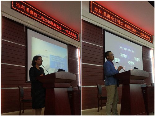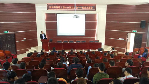 9:00,8家单位负责人、我系专业教师及2018届测绘专业学生如期参加了校企见面会,魏彬老师主持会议并介绍此次双选会的流程与相关信息。主任夏永华老师向到场的企业嘉宾表示热烈欢迎,介绍了我院测绘工程专业的相关信息,强调学院“产学结合、工学结合、理实结合”的人才培养之路以及我系近年来校企合作的进展与成绩,并希望同学们珍惜大四的顶岗实习机会,借助此次双选会积极主动了解企业,锁定目标单位,实现双向选择。随后,8家单位依次就企业概况、企业文化、岗位需求及薪资等问题进行了详细地宣讲。同学们认真聆听并记录,为简历投递做好充分准备。