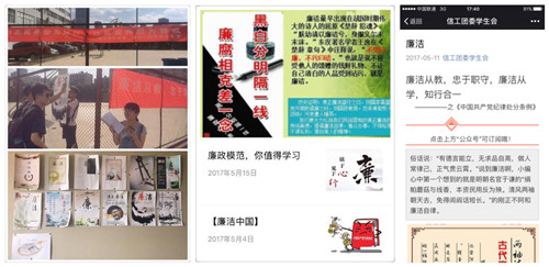 我系党总支以传播廉洁文化、颂扬廉洁楷模为主要内容,在教工党支部中征集了《以正面典型为标杆,以反面典型为警戒》为题目的研究型论文;在学生党支部中广泛开展了以“廉洁”为主题的海报创作征集活动,评比出了较优秀的作品同横幅宣传语一起悬挂、展出在学院篮球场、天桥和系部公告栏内。活动开展期间,为持续深化“廉洁教育”,各支部通过QQ群和微信公众号开辟了廉洁教育专栏,每周推送【廉洁中国】系列文章,分别以“黑白分明隔一线,廉腐相克差一念”;廉洁还得看这把“利剑”;解读《中国共产党纪律处分条例》;“廉政模范,你值得学习”为主题让大家进行了交流讨论,号召大家观看了反腐专题片《永远在路上》、《打铁还需自身硬》等视频,全面指引了教师党员“廉洁从教,忠于职守”的方向;培养了学生党员“廉洁从学,知行合一”的意识。活动尾声,支部成员纷纷在本次活动主题的横幅上签名,表明了自己坚定不移的“廉洁”意志。