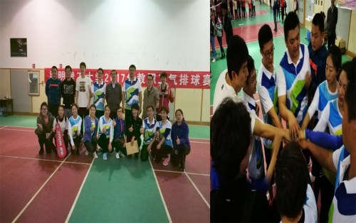 在校工会举办的2017年教职工气排球比赛中,城市学院代表队经过精心选拔队员,充分准备和训练。在小组淘汰赛中过五关斩六将,三战三胜,进入前八名,在淘汰赛中又战胜对手,挺进四强,在4月21日下午呈贡校区的半决赛和决赛中,经过努力拼搏,最终获得了季军。比赛体现了城市学院团结拼搏的精神,场上队员之间相互鼓励、配合默契,场外的啦啦队及替补队员不断为场上队员加油、鼓劲,比赛现场热闹非凡。通过比赛我院气排球队收获了奖牌和自信,也为城市学院争得了荣誉。