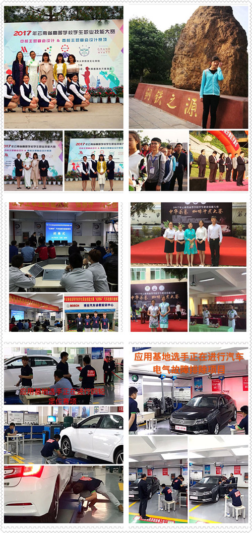 前往丽江云南大学旅游文化学院参加中餐主题宴会设计的同学们荣获团体二等奖;参加西餐主题宴会设计的三名同学分别获得了二等奖、三等奖的好成绩!前往安宁昆明工业职业技术学院参加会计科目扑克技能竞赛的同学们荣获第一名!前往云南机电职业技术学院参加汽车检测与维修技能竞赛的同学们,荣获三等奖!前往普洱云南农业大学热带作物学院参加中华茶艺技能竞赛的同学们,为他们的辛苦付出点赞,期待明年取得好成绩!