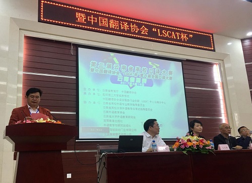 2017年4月15日,由云南省教育厅和中国翻译协会主办,昆明理工大学城市学院、中国翻译协会语言服务行业创业创新(LASCAT)中心云南分中心承办的第二届云南省高校口译大赛(英语)暨中国翻译协会“LSCAT杯”第六届全国口译大赛(英语)云南省复赛在昆明理工大学城市学院举办并取得了圆满成功。云南省教育厅高教处王文婷老师、教育部高校外语类教学指导委员会英语分会委员、云南省外语教育学会会长、云南高校外语教学指导委员会主任委员、云南省高校教学名师原一川教授、云南省高校大学外语教学与指导委员会主任委员、云南省外语教育学会副会长兼秘书长、云南省高级教学名师、云南师范大学外国语学院院长冯智文、昆明理工大学城市学院党委副书记孙刚、中国翻译协会语言服务行业创业创新(LSCAT)中心副主任解蒙出席了开幕式。