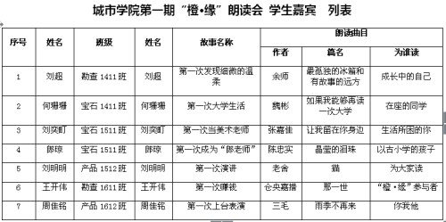 或许是源于响应“继承发扬中华优秀传统文化”的号召,源于掀起“全民朗读”热潮的《朗读者》,源于这个浮躁社会中有越来越多的大学生对文学期待着渴望、对阅读充满着激情,昆明理工大学城市学院第一期“橙•缘”朗读会在地球科学技术系学工办近一个月的酝酿、发酵、准备、宣传等工作后,于2017年4月25日19:00和全院师生见面了。此次朗读会有幸邀请到城市学院基础课部主任樊则宾老师、学生工作部杨建坤老师、社会人士杜建华先生、7名学生嘉宾以及10名学生观众,由地科系副主任魏彬老师主持。