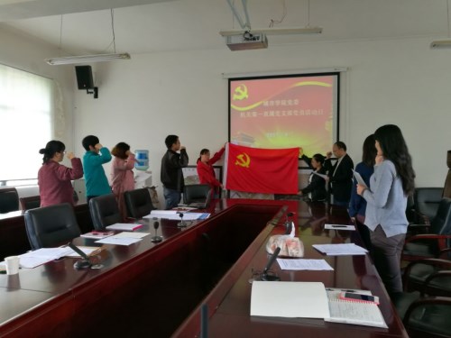 4月28日下午14:00,为推进“两学一做”学习教育制度化、常态化,坚持全覆盖、常态化、重创新、求实效,坚持学做结合,全面落实党支部“三会一课”制度,结合上级党组织关于创建一流党建活动和基层党建提升年活动的决策部署和2017年第一次党风廉政“警示教育月”活动要求,机关第一直属党支部组织开展“重温入党誓词、践行两学一做”主题党员活动日活动。杨林伟书记主持学习实践活动,支部13名党员参加活动。