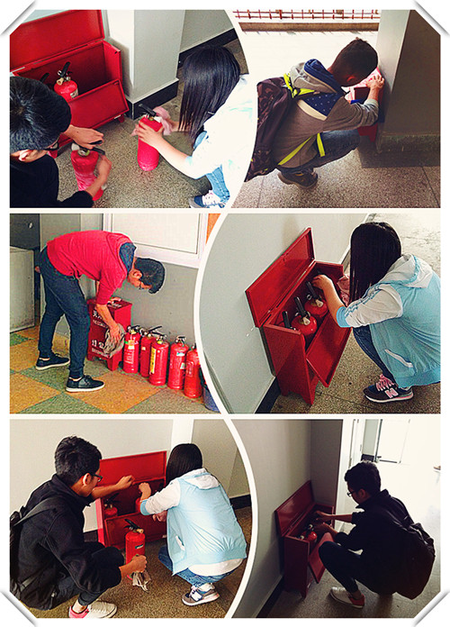学雷锋志愿服务月活动期间,我系先后展开学习雷锋精神与消防安全的活动。团日活动的展开,16级同学热情尤为高涨,积极筹办,14、15级在去年雷锋月的理论基础上更深一步讲解和宣传。雷锋精神付诸于实践。3月17日,土木工程系志愿者队组织了做好事做善事做志愿者----消防安全主题活动。本次活动的主要目的是重点排查梓韵楼消防设施,确保无安全隐患。在活动开始前,梓韵楼保安大叔对消防箱做了简单的说明,随后我系志愿者队成员分别对梓韵楼消防箱进行了质检和清扫工作。重点检查了:一、消防设施箱体外观及部件有无受损。二、箱内是否放置其他杂物。三、箱体内外是否保持干净无灰尘、无水渍。四、灭火器是否按规定配置。五、筒体是否有严重变形和严重锈蚀现象。六、喷嘴是否有严重变形、损伤、丢失等现象。经过队员们的共同努力,所有消防器材都已检查和清扫完毕,没有发现上述现象。虽然器材有点多,但大家都投入其中没有任何的怨言,都感受到了劳动的快乐。脸上始终保持着微笑,经过队员们的共同努力,所有的消防器材变得明亮,我们的学习环境也变得更加美好了。