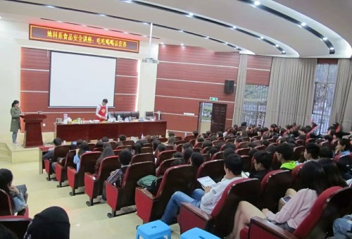 为进一步推进我院食品安全工作,增强学生自我保护意识,促进学生健康全面发展,地球科学技术系于3月24日19:00在明虹楼报告厅举办食品安全讲座:吃吃喝喝话营养。国家公共营养技师、省营养师考评员、从事营养教育八年的谭宝琦老师为我院200余名师生呈现了一场“理论讲解+实际操作”互动性强的讲座。
