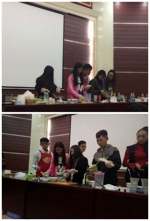 此次讲座分为“学习食品安全知识和亲手体验早餐制作”两部分。首先谭老师以 “有多少人不习惯吃早点”这一问题展开讲座,并分析了早餐的质量关系到整天的学习、工作状态;接着,就“早餐中如何选择食物营养才均衡,如何根据自己的身体情况挑选适合的食材,挑选食材的窍门”三方面,教会学生学会“五看”:看名称、看日期、看配料表、看营养成分表和看特殊标识;最后,在老师的指导下,学生亲自上台体验 “中式+西式”早餐制作,并将自己的劳动成果与台下的同学一起分享。