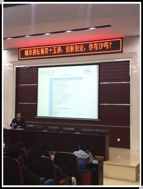2016年12月28日19时,土木工程系在城市学院报告厅开展城市讲坛第四十五讲:创新创业,你有IP吗?到场的领导老师有土木工程系系主任陈勇老师、土木工程系副主任倪婷老师、土木工程系团委书记李媛媛老师、土木工程系李洪超老师。
