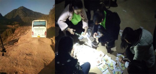 经过11月25-27日的爱心募捐、12月12日的志愿者培训以及其他活动物资的前期准备,12月17日13:30我院29名大学生志愿者在地科系副主任魏彬老师的组织下准时集合出发,经过长达近3个小时的路途到达了禄劝县中屏中学。虽然寒风瑟瑟,但经过工作定向,同学们依然怀着饱满的激情紧急投入到物资搬运、活动布置等工作中,并于20:00完成了所有工作。12月18日6:30,志愿者们经过简单的洗漱、早餐后,于8:00准时到达活动场地凝聚能量投入到一整天的志愿者工作中,热情的接待从家中赶来的孩子和家长们,暖暖的微笑拉近了志愿者和孩子间的距离,耐心的聆听消除了志愿者和家长们的陌生。