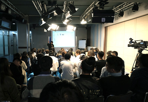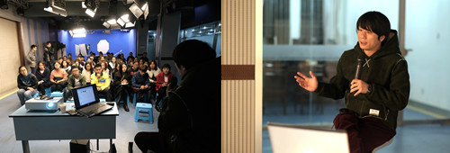 11月8日晚,德阳楼405艺术设计系数字媒体艺术实训中心,新锐导演颜俊杰做客昆明理工大学城市学院“ART时空•城市讲台”第6期,与同学们聊聊影视创作中的“那些事儿”。