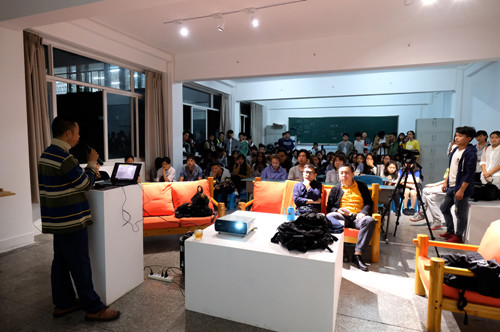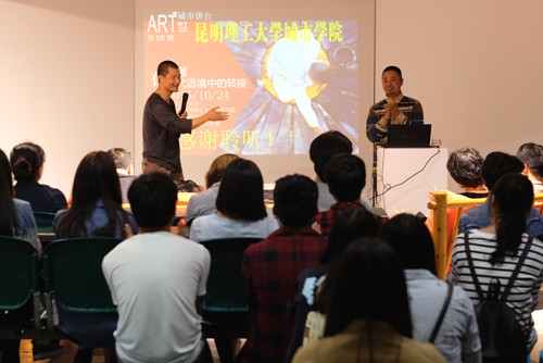 10月24日晚,昆明理工大学城市学院“ART时.空•城市讲台”第5期在新迎校区明虹楼综合艺术工作室举行,本期讲台由中国当代水墨艺术的新锐艺术家尹天石先生主讲,并特邀艺术家和丽斌参加。