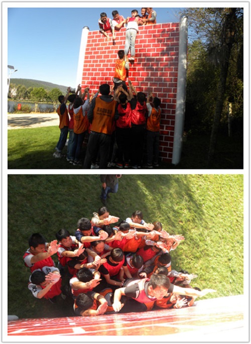 本次训练在“桃花朵朵开”和“兔子舞”两个集体活动中拉开了序幕,之后教练将所有参训选手分为两个组,黄队由赵娟老师、副主席韩楠带队,红队由副主席邹俊杰、文艺部副部长朱一帆带队。分组结束后,迎接两队的第一个活动是PVC管传送乒乓球的活动,教练一声令下,两个组争分夺秒,组内成员团结合作,完美搭配,很快完成了这项活动。随后两组成员分别完成了“怪兽进山,全力援助”的游戏及“横穿电网”的训练,两个队的人员互相合作、互相帮忙,在活动过程中,大家都尽自己的全力,帮助其他人能顺利安全地通过。接着到了最后一个激动人心的项目—“障碍物攀爬”,此项活动是整个训练中最艰难的项目,需要记住所有技巧才能安全完成,在攀爬过程中,虽然经历了一次次失败、遭遇了一次次挫折,但在我系“三不相信”精神的激励下,以及同学们齐心协力、团结互助下,30名参训队员成功翻越毕业墙。