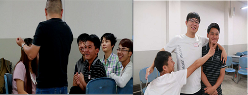 游戏的第二个环节则充满技术性与危险性。一人双手环胸向后倒,小组的其他成员则用双手围成墙保护着自己的伙伴不受伤,一声声坚定又洪亮的“请相信我”回荡在教室,友谊的小船在这里欢乐的荡起了双桨。