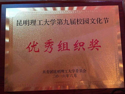2016年6月7日,在刚结束的昆明理工大学第九届校园文化艺术节中,经校团委评选,我院再次荣获“优秀组织奖”;李光强等6名同学荣获“第九届校园文化艺术节先进个人”称号。