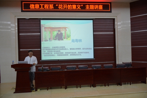 艺术源于生活,说艺术、谈人生,用美的眼睛看世界。信息工程系于2016年6月22日晚19:00在昆明理工大学城市学院明虹楼报告厅,举办“花开的意义”主题讲座,主讲人肖寿林老师,从绘画的世界中走出来,为大家讲述艺术人生。