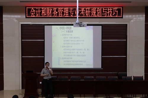 2016年5月12号晚19:00城市学院会计系针对会计专业和财务管理专业的学生在明虹楼报告厅进行了关于考研规划与技巧的讲座,特别邀请了“云南省财经大学会计学院科研秘书”、“中国少数民族财会博物馆办公室副主任”曾军老师作为主讲人。此次讲座旨在让有考研意向同学了解掌握考研信息,快速找到考研的目标和方向,消除对考研的畏惧,树立自信心。